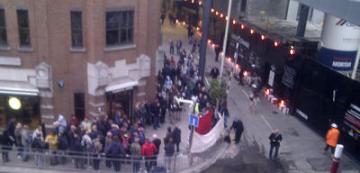Below are pictures from early on (it later grew to about 200 people) and a short interview with protest organiser Alan Keayes, full report to follow! For more information and updates, you can check the campaign blog: http://jibelectrician.blogspot.com.